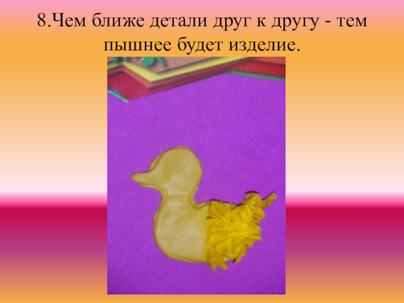 Слайд 118.Чем ближе детали друг к другу - тем пышнее будет изделие.