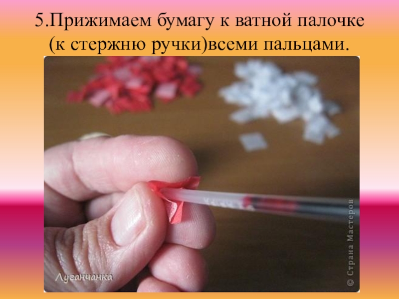 Слайд 85.Прижимаем бумагу к ватной палочке (к стержню ручки)всеми пальцами.