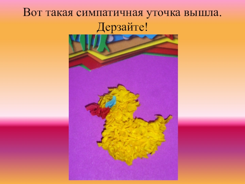 Слайд 13Вот такая симпатичная уточка вышла. Дерзайте!