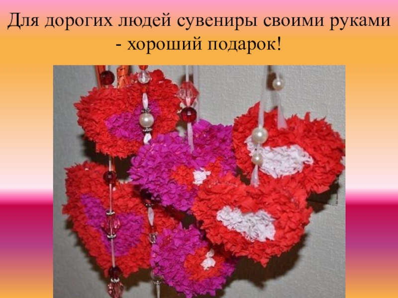 Слайд 3Для дорогих людей сувениры своими руками - хороший подарок!