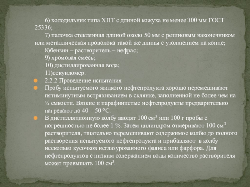 При количественном определении содержания воды в нефтепродуктах применяются следующие аппаратура, реактивы и материалы: