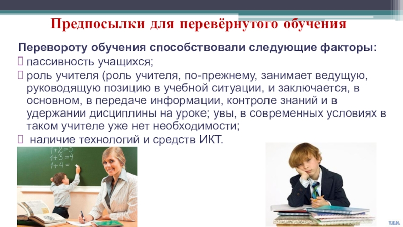 Перевернутый урок – это такая педагогическая модель, в которой типичная подача лекций и организация домашних заданий представлены наоборот. Ученики смотрят дома короткие видеолекции, в то время как в классе отводится время на выполнение упражнений, обсуждение проектов и дискуссии. Видеолекции часто рассматриваются как ключевой компонент в перевернутом подходе, такие лекции в настоящее время либо создаются преподавателем и размещаются в интернете, либо хранятся в каком-то онлайн-файлообменнике.