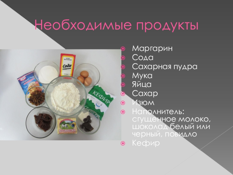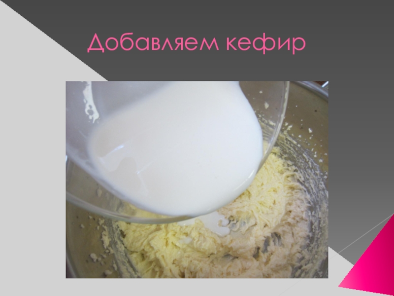 Маргарин с сахаром взбивают, добавляют кефир и продолжают взбивать, затем добавляют яйца, взбивают до однородной консистенции, затем вводят муку, перемешанную с содой и ванилином, замешивают.
