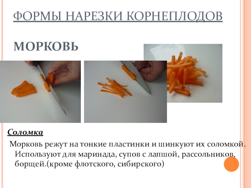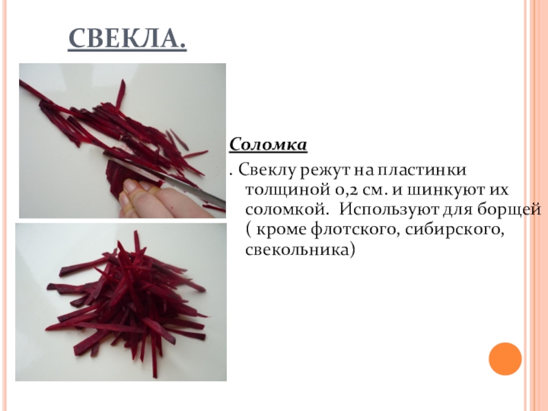 соломкой. Используют для борщей ( кроме флотского, сибирского, свекольника)
