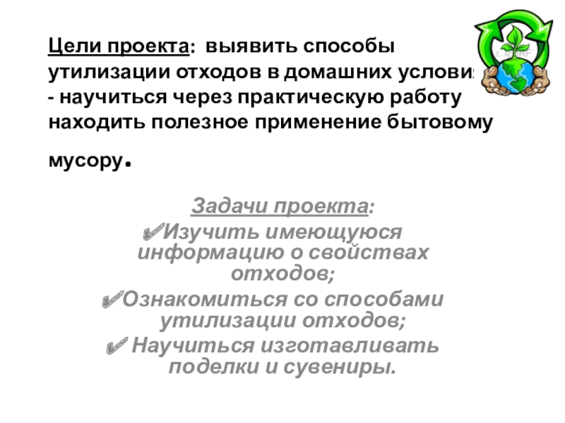 По другому он еще звучит так: « Зеленый символ вторичной переработки».