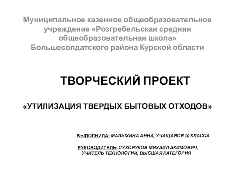 Муниципальное казенное общеобразовательное учреждение «Розгребельская средняя общеобразовательная школа» Большесолдатского района Курской области