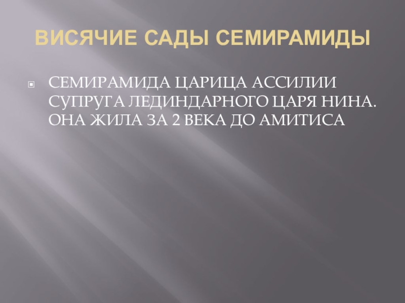 ВИСЯЧИЕ САДЫ СЕМИРАМИДЫАМИТИС- ЖЕНА ЦАРЯ ВАВИЛОНА.
