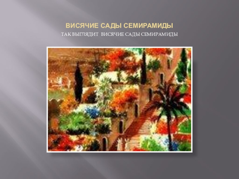 Слайд 10ВИСЯЧИЕ САДЫ СЕМИРАМИДЫ