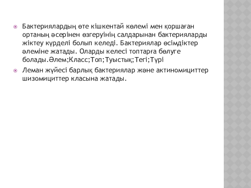 Слайд 1Тақырып: Бактерияның жіктелуі.