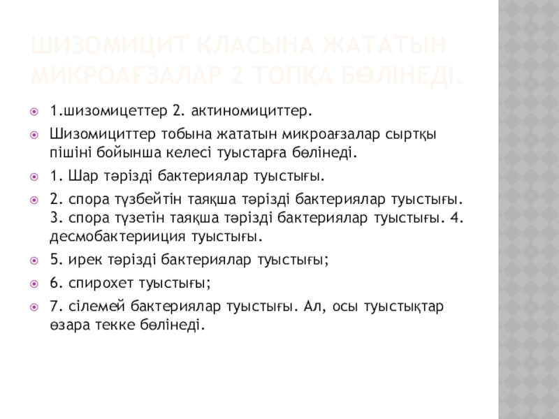 Слайд 4Шизомицит класына жататын микроағзалар 2 топқа бөлінеді.