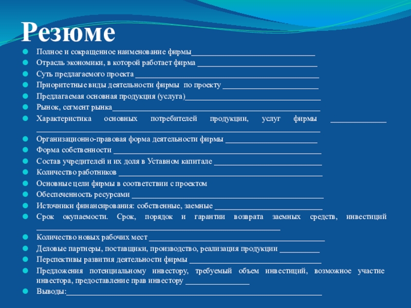 1. Деловое резюме