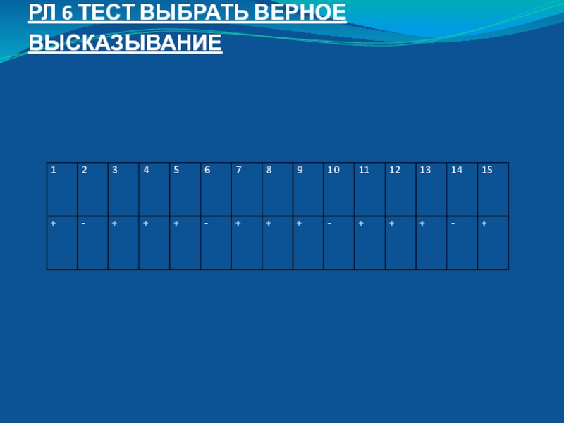 Слайд 13РЛ 6 ТЕСТ ВЫБРАТЬ ВЕРНОЕ ВЫСКАЗЫВАНИЕ