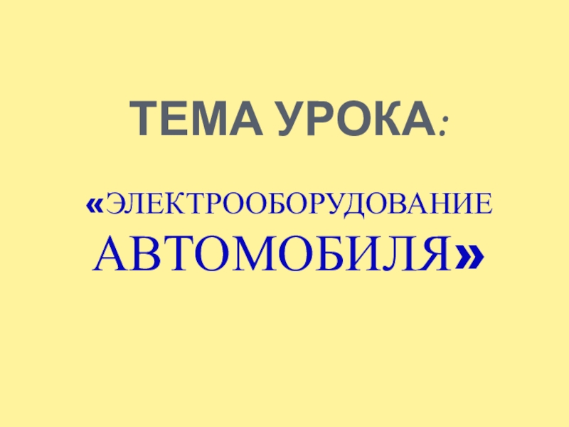 ТЕМА УРОКА: «Электрооборудование автомобиля»