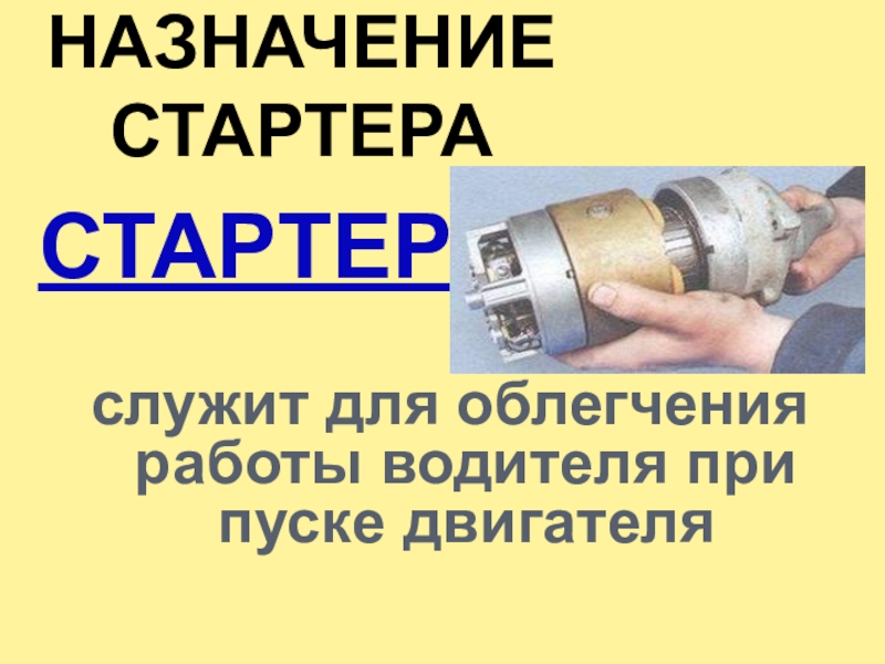 Слайд 12НАЗНАЧЕНИЕ СТАРТЕРА
