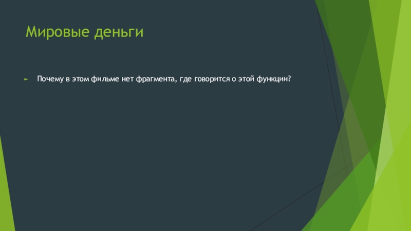 Мировые деньгиПочему в этом фильме нет фрагмента, где говорится о этой функции?