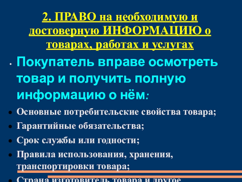 Слайд 132. ПРАВО на необходимую и достоверную ИНФОРМАЦИЮ о товарах, работах и