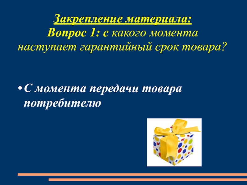 Вопрос 1: с какого момента наступает гарантийный срок товара?