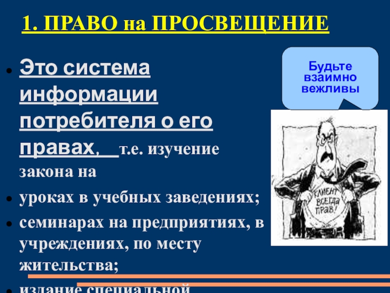 Слайд 121. ПРАВО на ПРОСВЕЩЕНИЕ