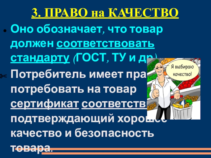 Слайд 163. ПРАВО на КАЧЕСТВО