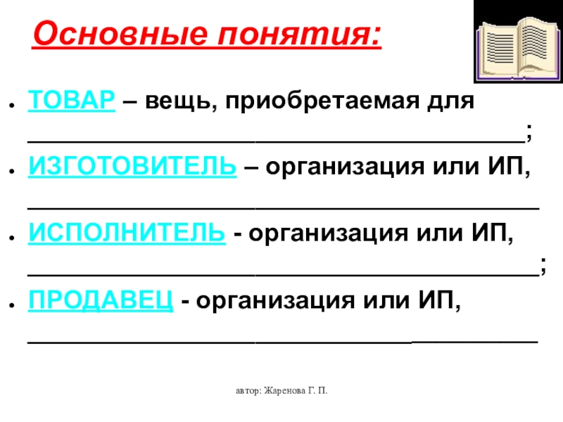 ТОВАР – вещь, приобретаемая для ___________________________________;