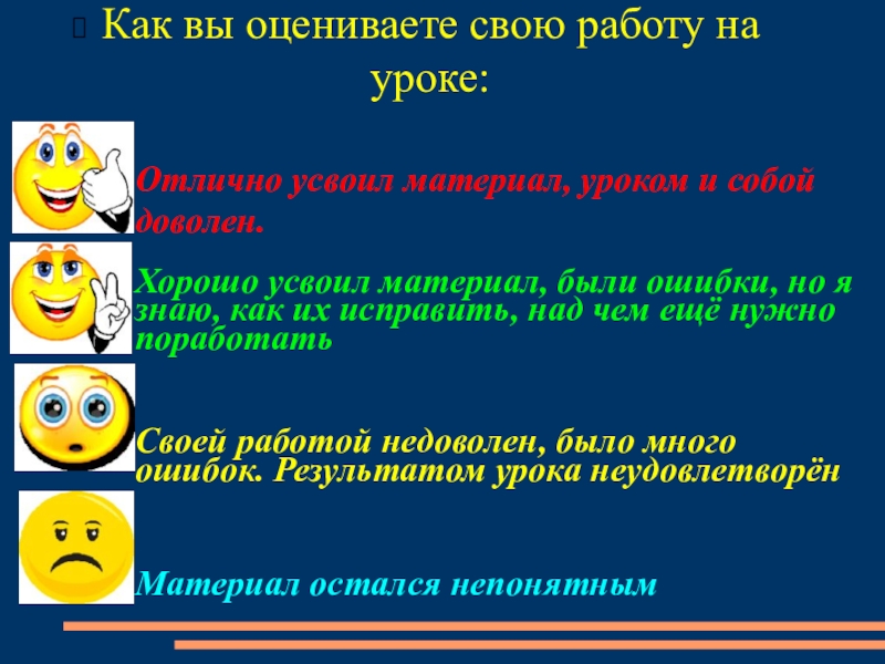 Слайд 36Как вы оцениваете свою работу на уроке: