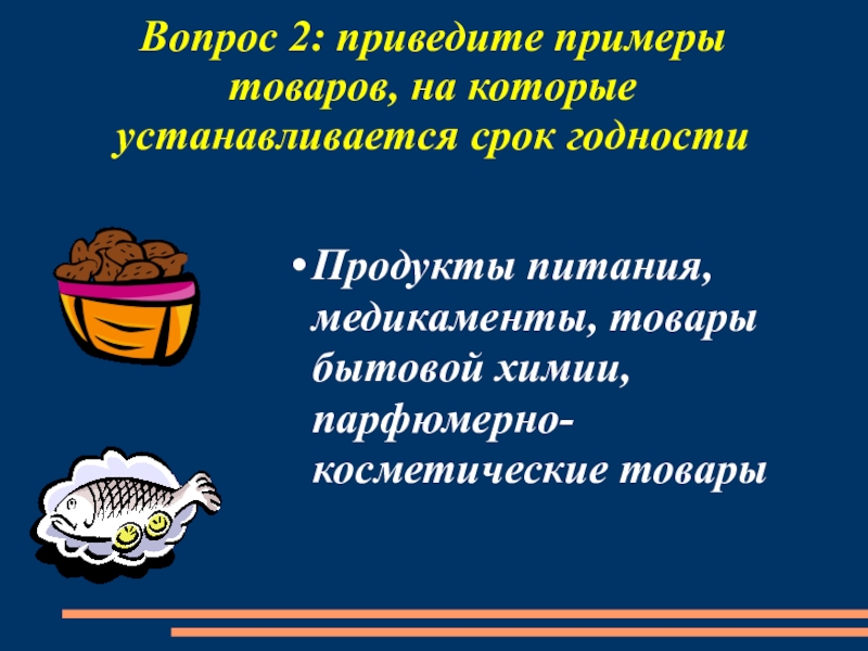 Слайд 22Вопрос 2: приведите примеры товаров, на которые