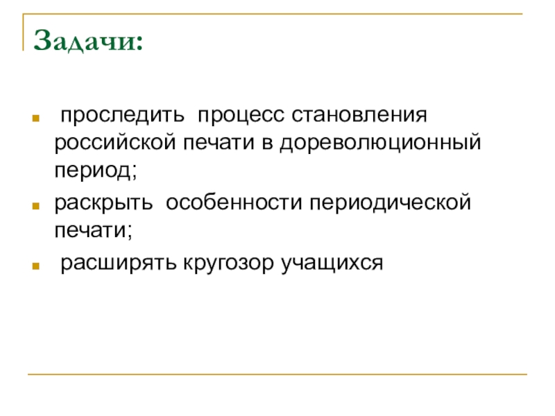 проследить процесс становления российской печати в дореволюционный период;