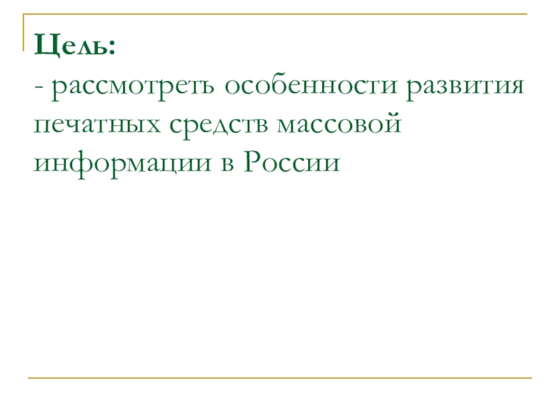- рассмотреть особенности развития печатных средств массовой информации в России