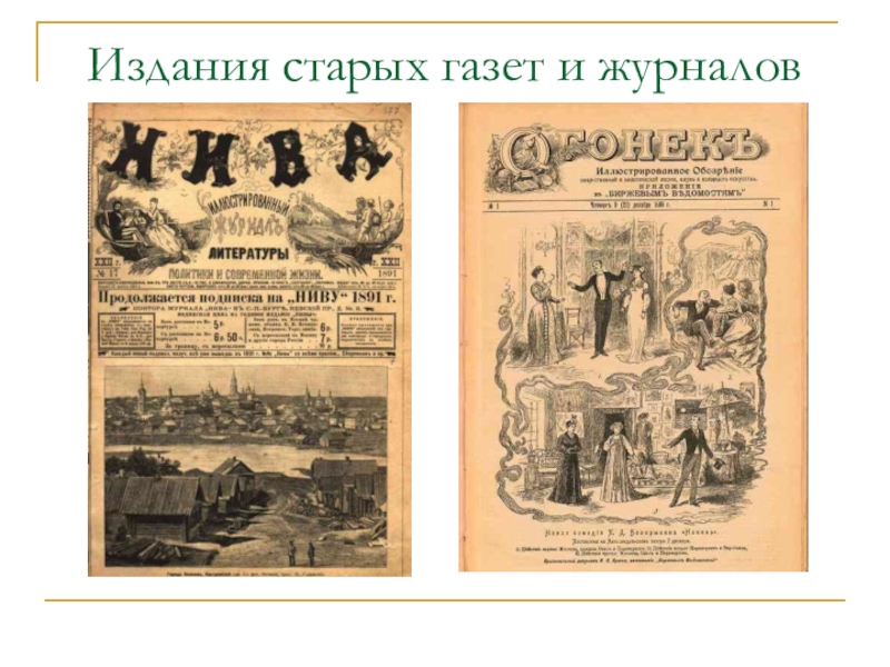 Слайд 1История первой газеты и журнала
