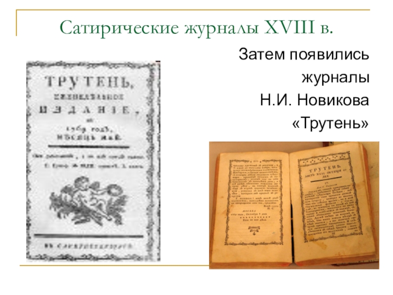 Слайд 19Сатирические журналы XVIII в.