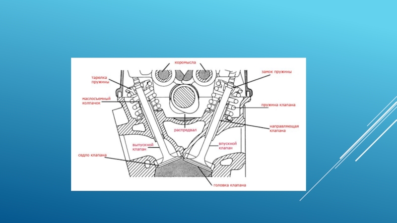 Слайд 23Клапан прижимается к седлу при помощи цилиндрической стальной пружины. Кроме того,