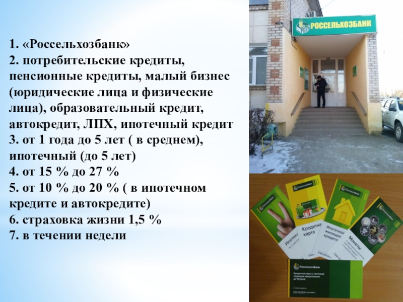 2. потребительские кредиты, пенсионные кредиты, малый бизнес (юридические лица и