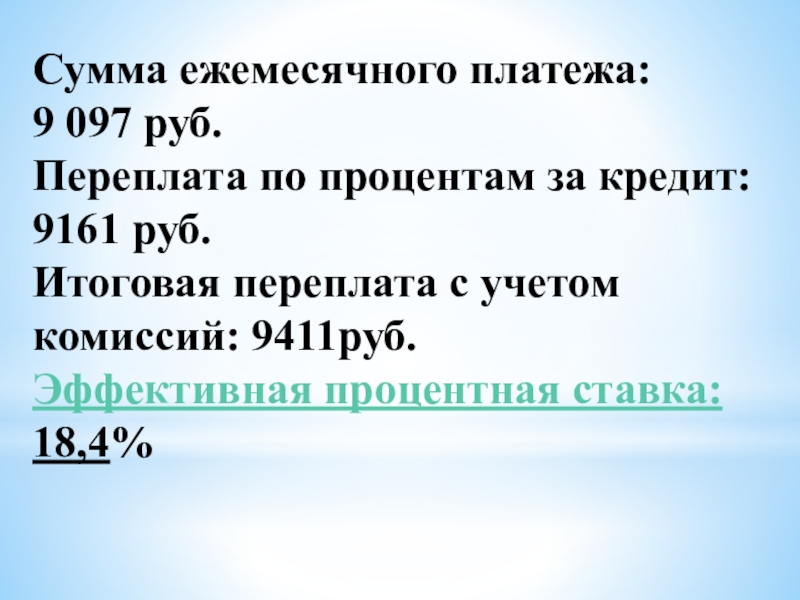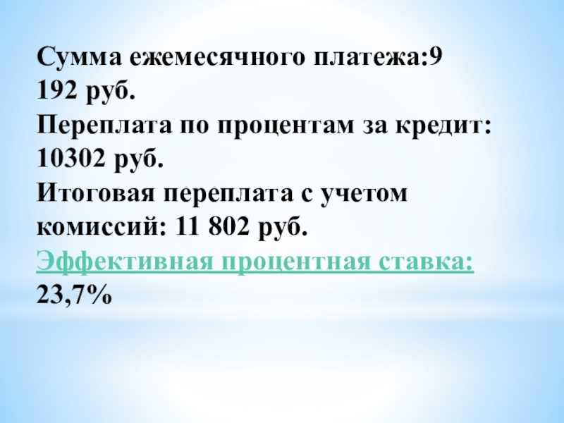 Слайд 34Сумма ежемесячного платежа:9 192 руб.