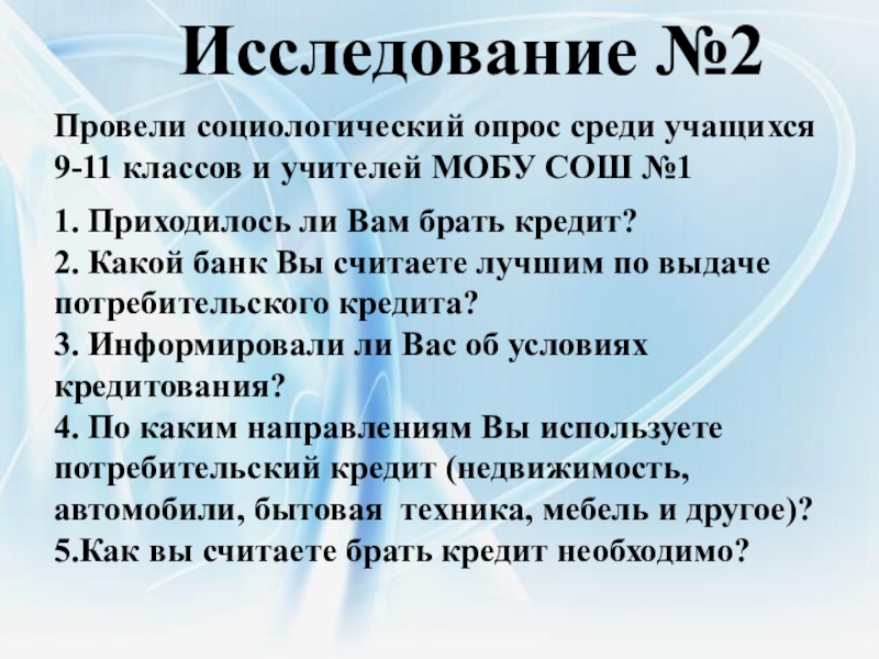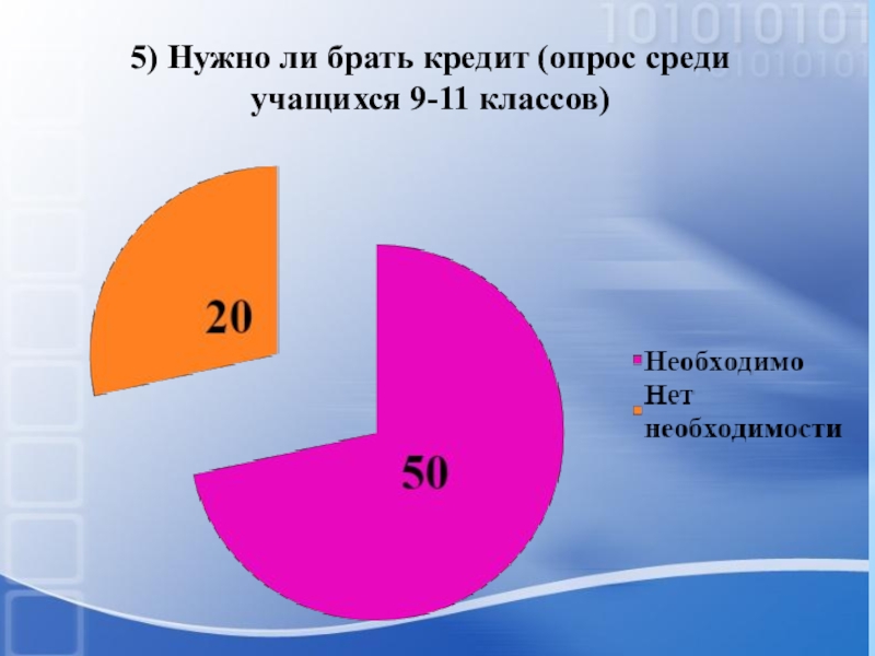 Слайд 275) Нужно ли брать кредит (опрос среди учащихся 9-11 классов)