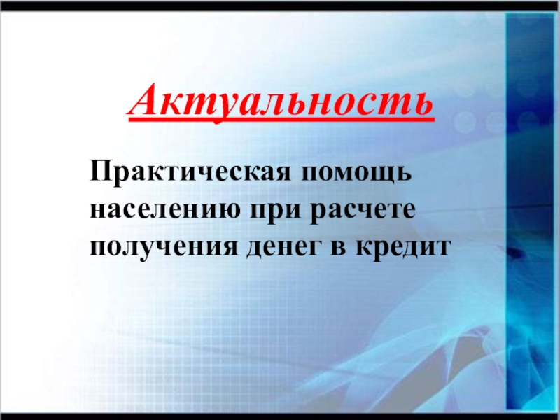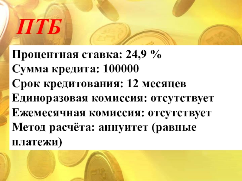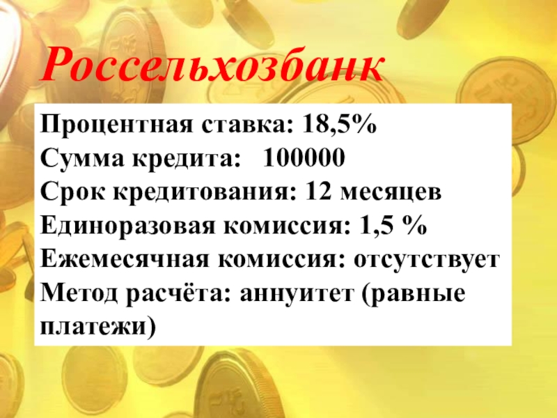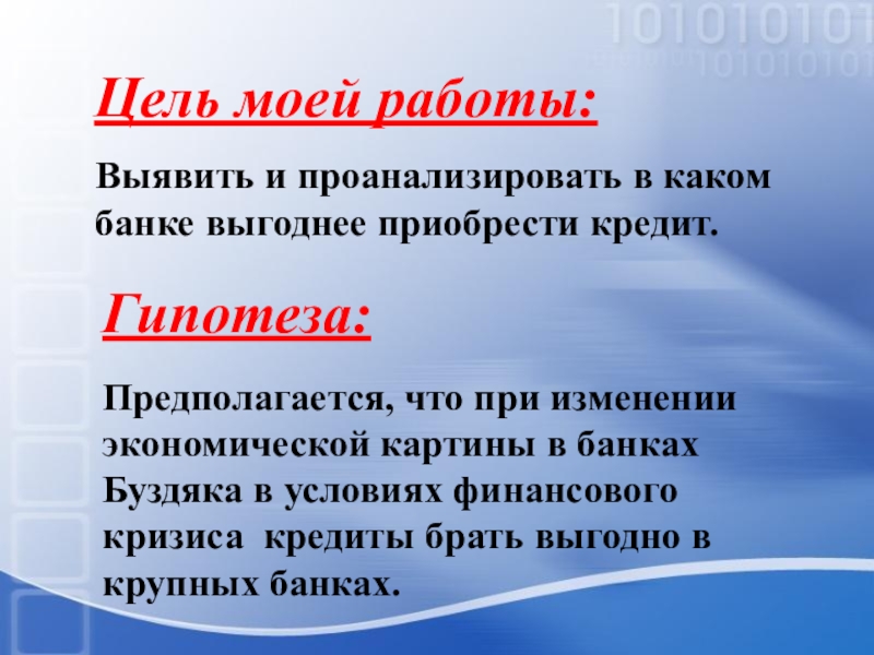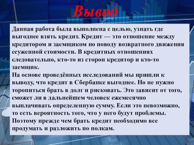 Слайд 40Данная работа была выполнена с целью, узнать где выгоднее взять кредит.