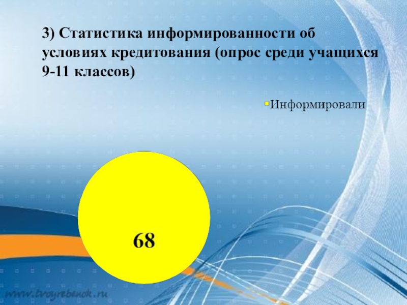 Слайд 233) Статистика информированности об условиях кредитования (опрос среди учащихся 9-11 классов)
