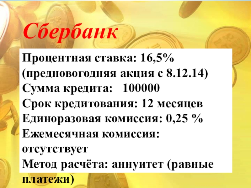 Процентная ставка: 16,5% (предновогодняя акция с 8.12.14)