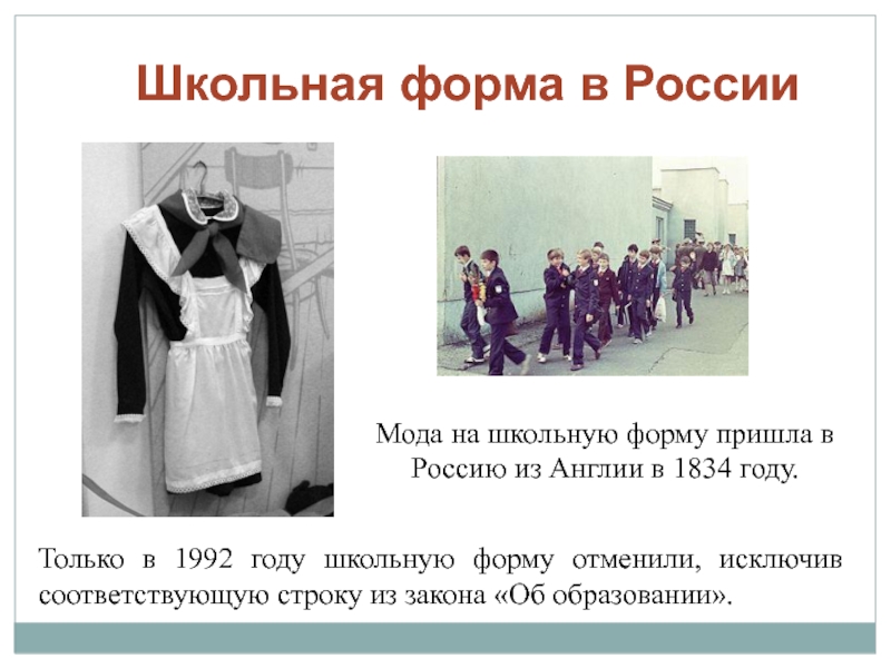 Только в 1992 году школьную форму отменили, исключив соответствующую строку из закона «Об образовании».