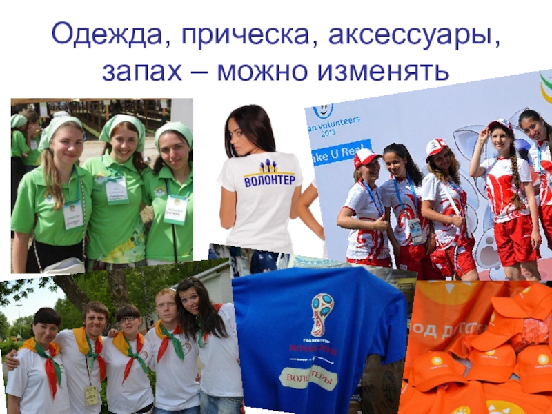 Слайд 9Одежда, прическа, аксессуары, запах – можно изменять
