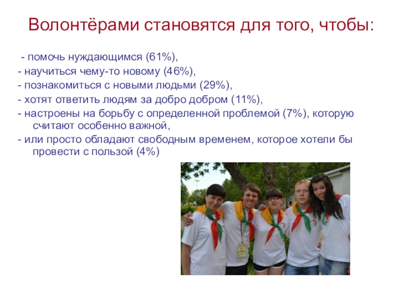 Слайд 3Волонтёрами становятся для того, чтобы: