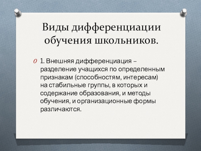 Виды дифференциации обучения школьников.