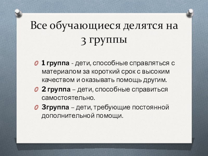 Слайд 8Все обучающиеся делятся на 3 группы