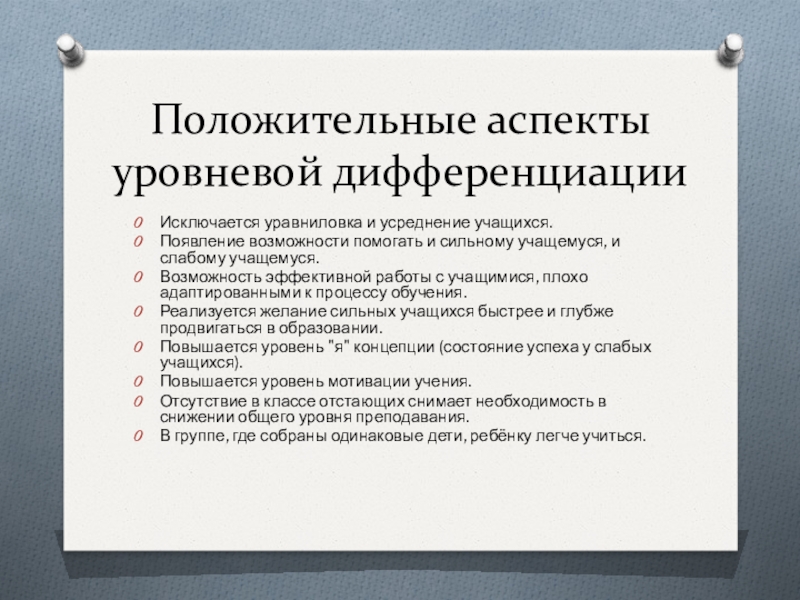 Положительные аспекты уровневой дифференциации