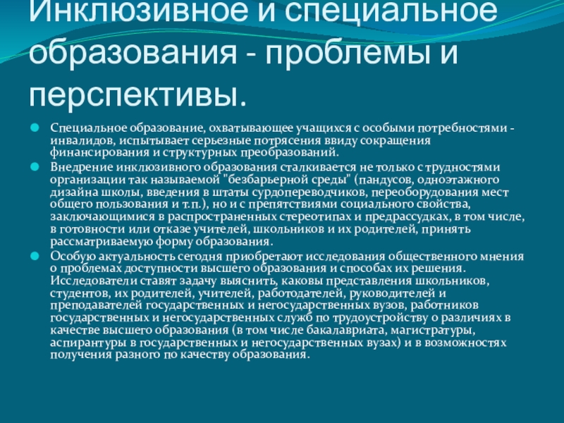 Слайд 19Инклюзивное и специальное образования - проблемы и перспективы.