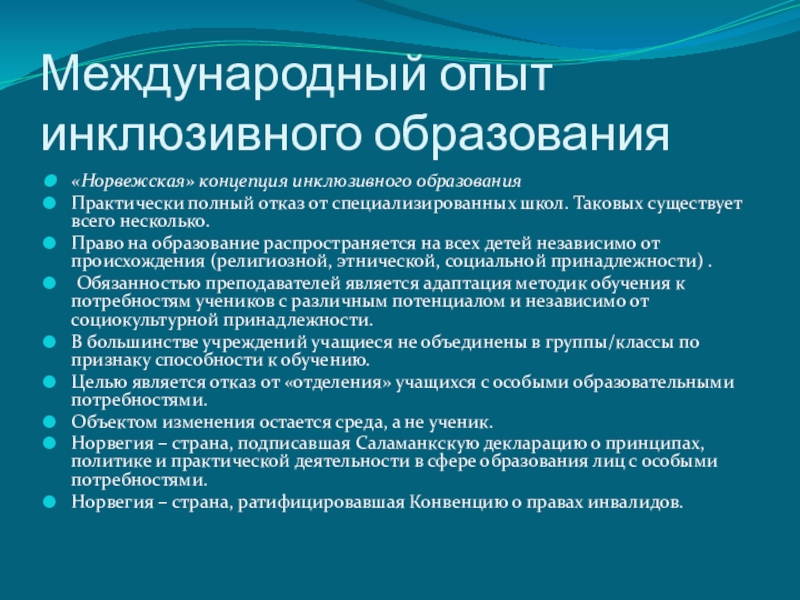 Слайд 16«Норвежская» концепция инклюзивного образования
