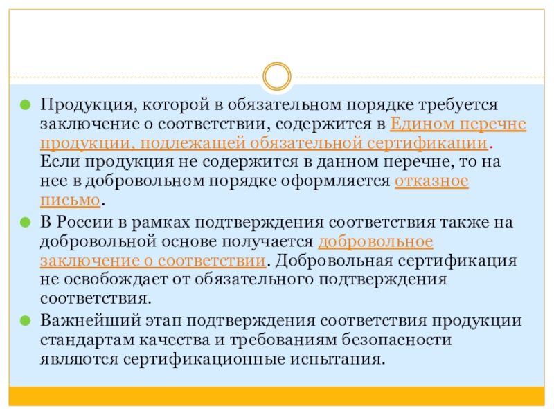 перечне продукции, подлежащей обязательной сертификации. Если продукция не содержится в данном перечне, то на нее в добровольном порядке оформляется отказное письмо.