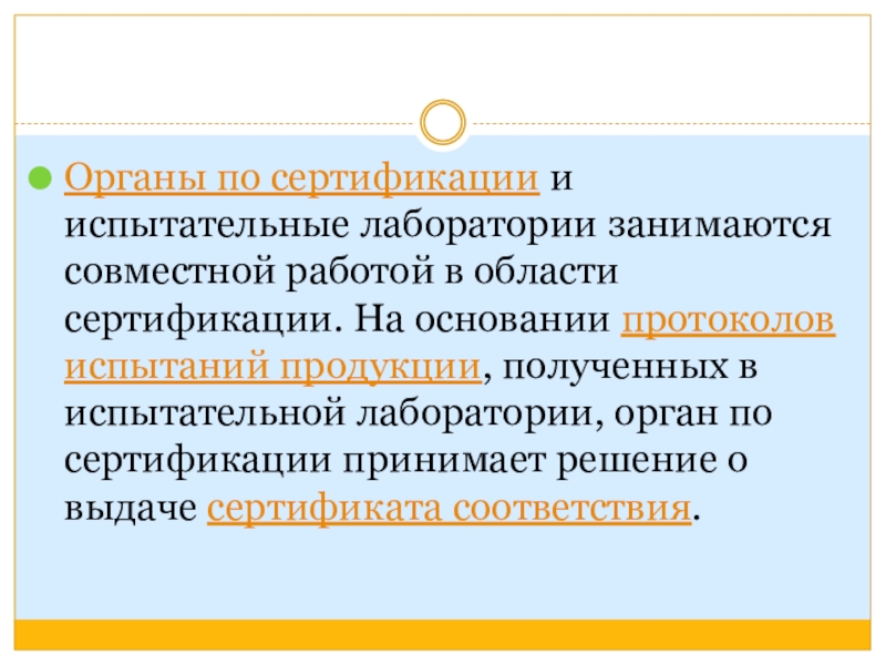Слайд 5Органы по сертификации и испытательные лаборатории занимаются совместной работой в области сертификации.