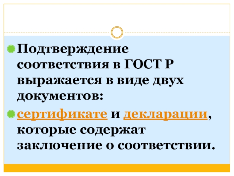 Слайд 10Подтверждение соответствия в ГОСТ Р выражается в виде двух документов: