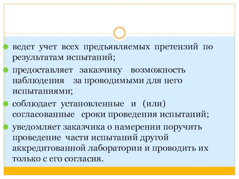 Слайд 7ведет учет всех предъявляемых претензий по результатам испытаний;