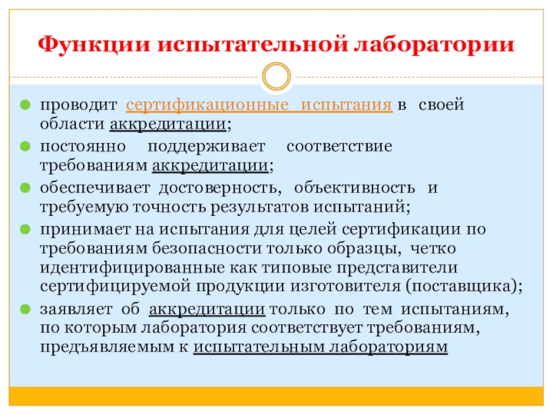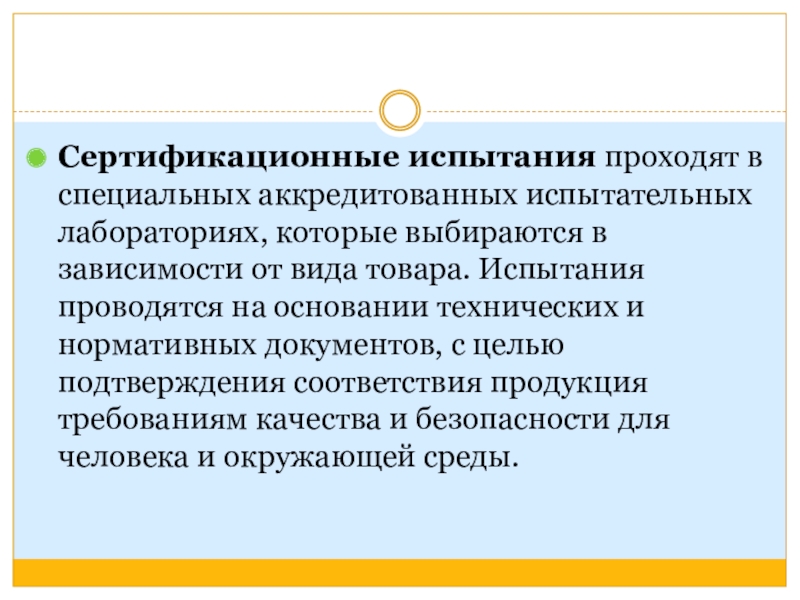 Слайд 12Сертификационные испытания проходят в специальных аккредитованных испытательных лабораториях, которые выбираются в зависимости
